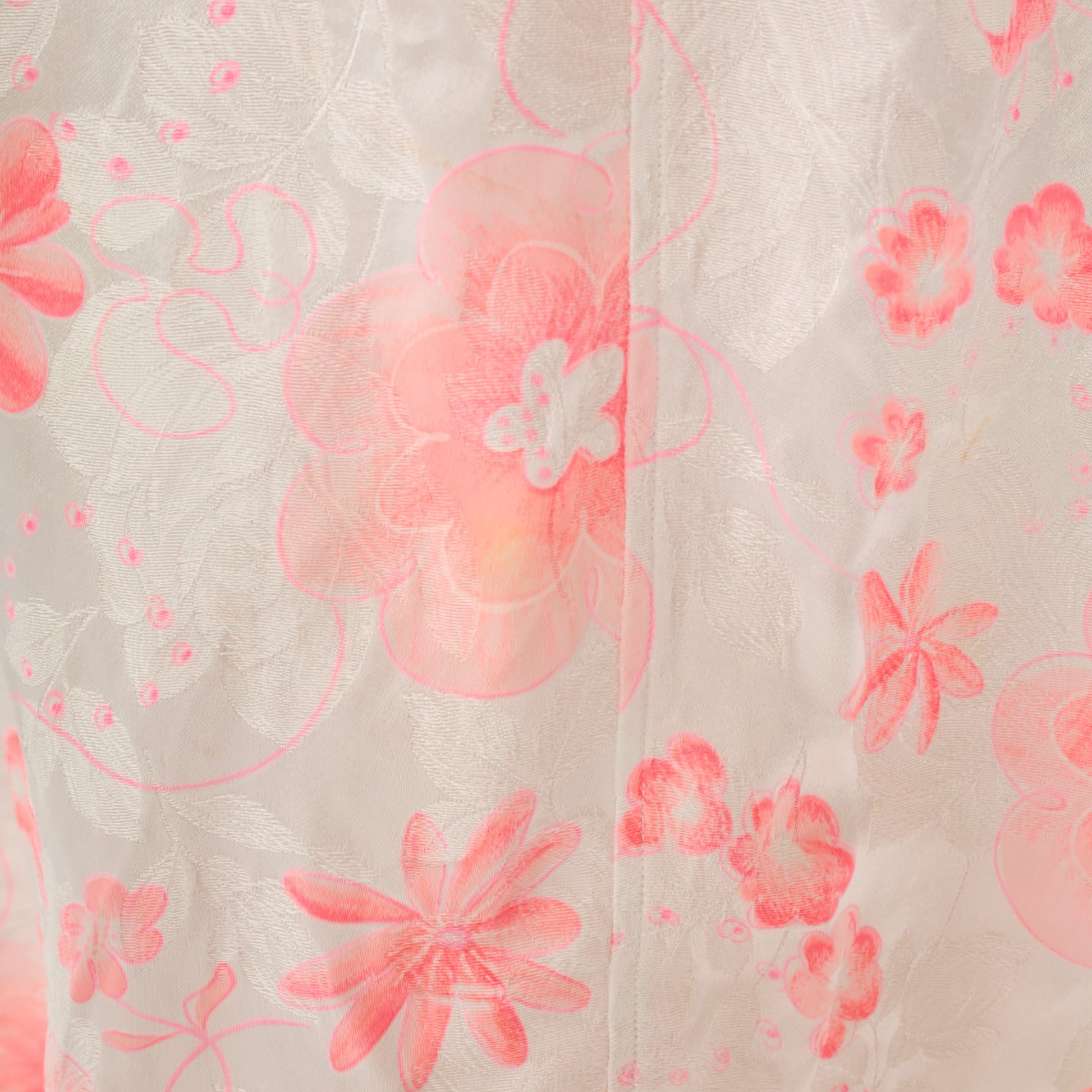 70s Courrèges Paris Wrap Dress Halter Neck Floral Print Vintage Couture French Designer Gown Double Belted Waist Pink White Extra Small XS 0
