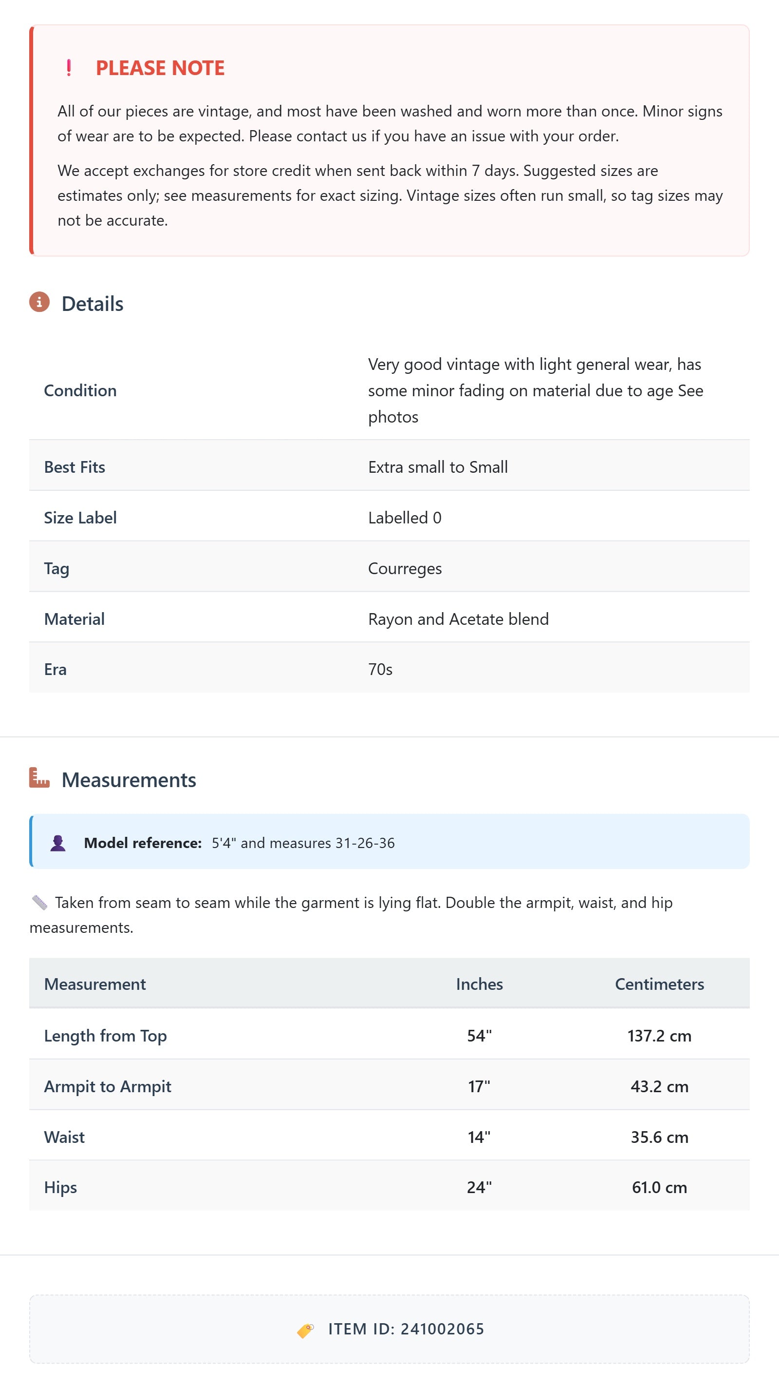 Suggested sizes are estimates only; see measurements for exact sizing. Vintage sizes often run small, so tag sizes may not be accurate.