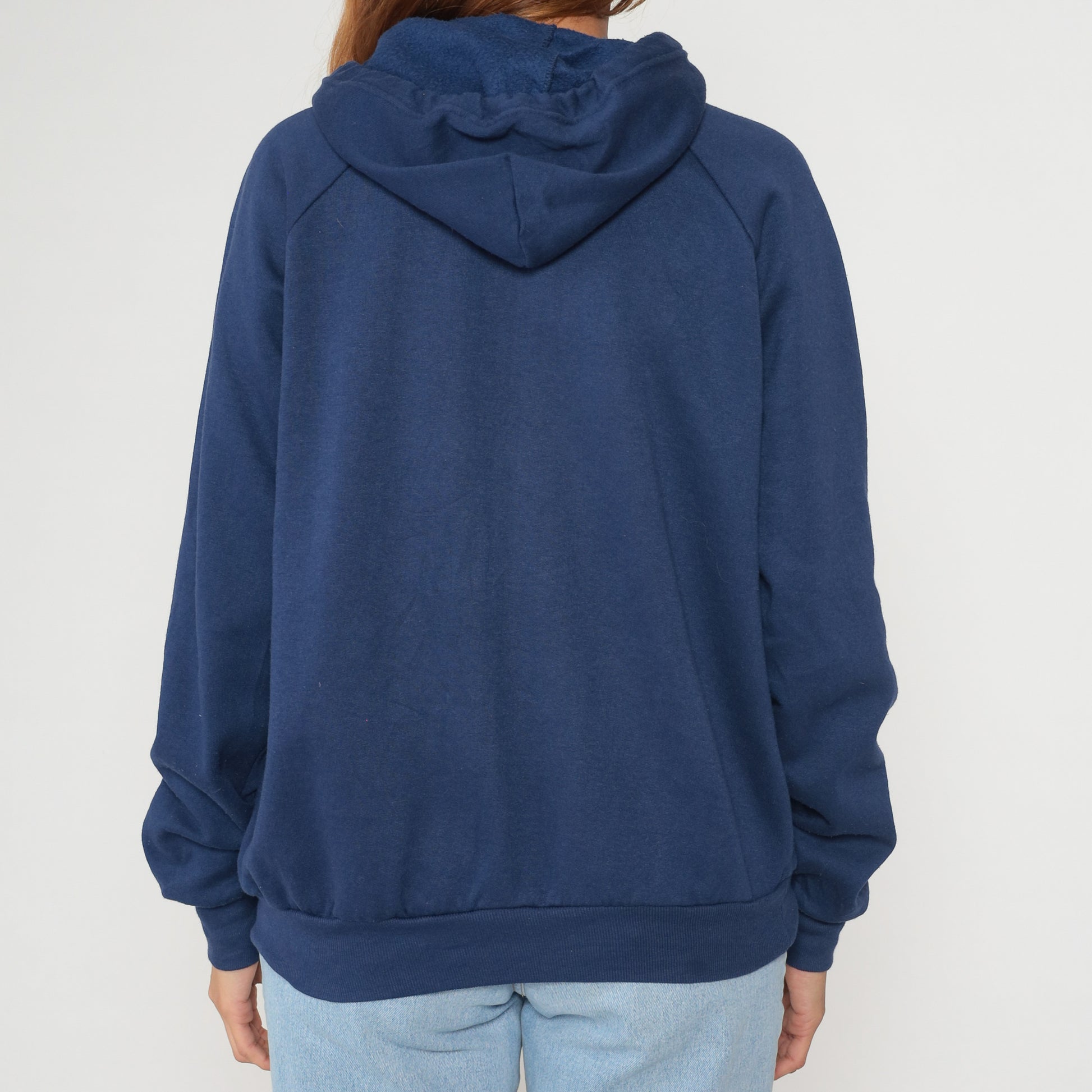 80s NFL Los Angeles Rams Hoodie Navy Blue Football Sweatshirt Vintage Athletic Pullover Kangaroo Pocket Team Official License Men's Large L