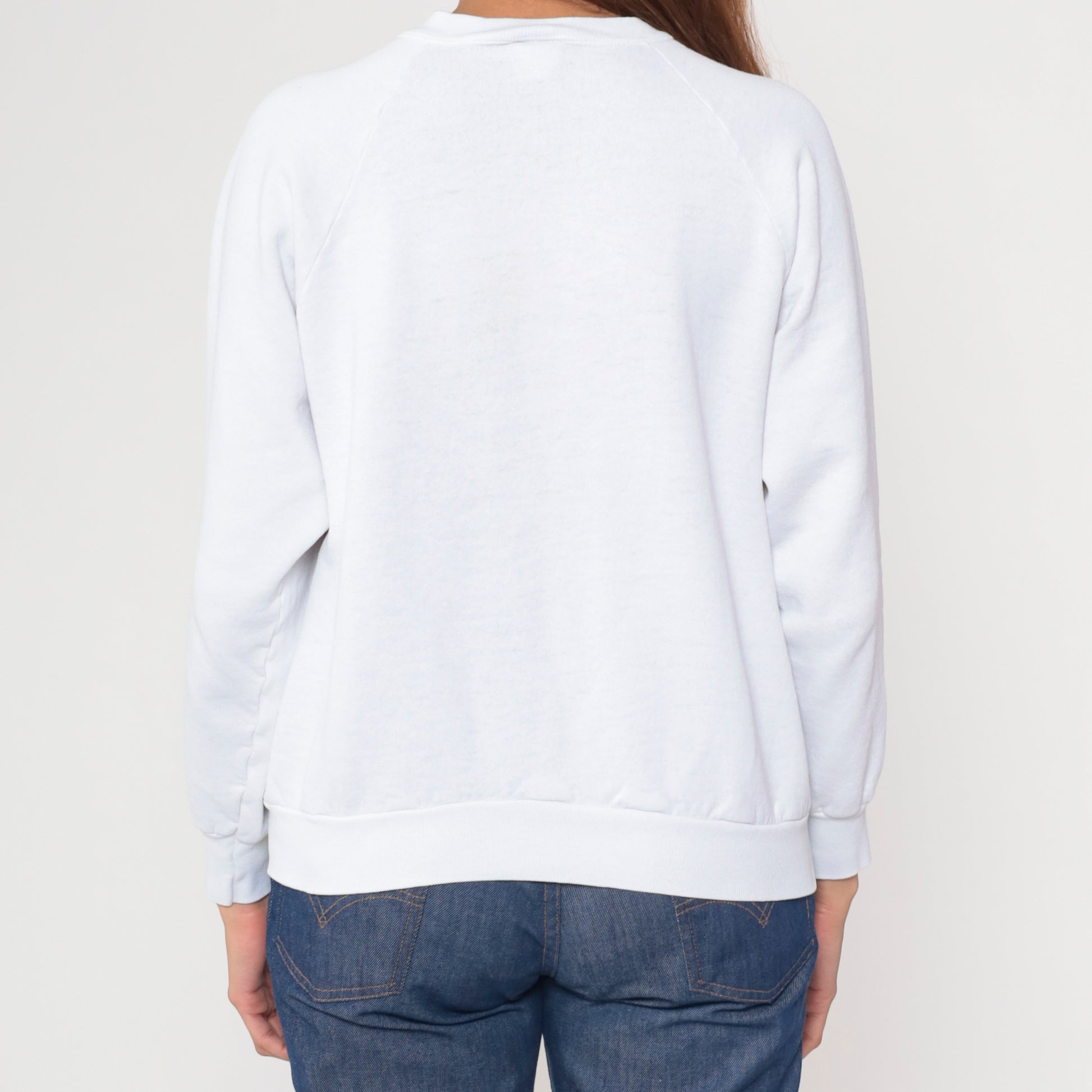 90s white graphic sweatshirt with Diet Pepsi and Pepsi cans wearing Santa hats across the front, text reading "Cool is the Rule this Yule" below. Crew neck with ribbed collar, cuffs, and hem, long sleeves.