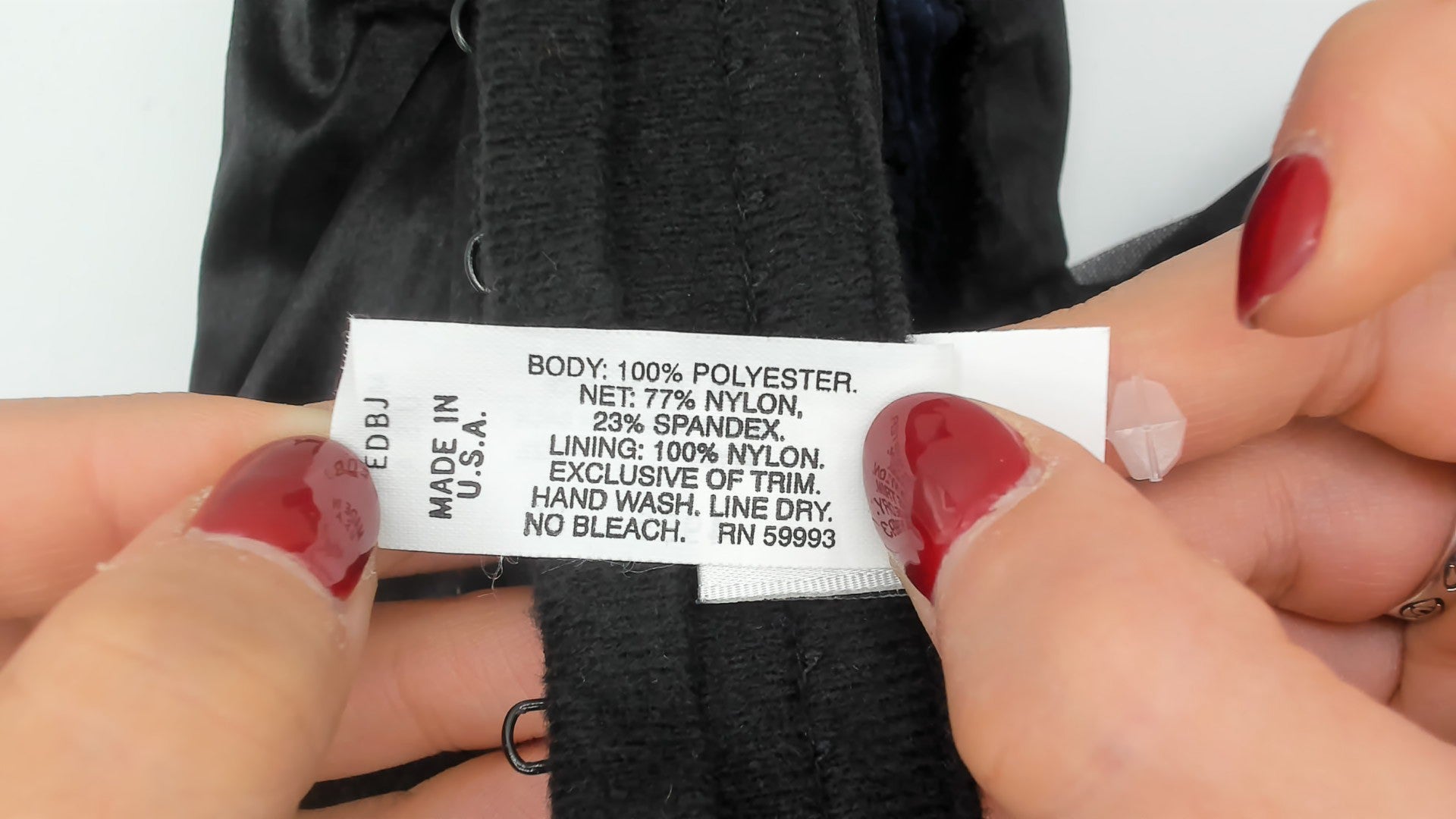 Material: Labelled body: 100 Polyester bet: 77 Nylon 23 spandex lining: 100 Nylon