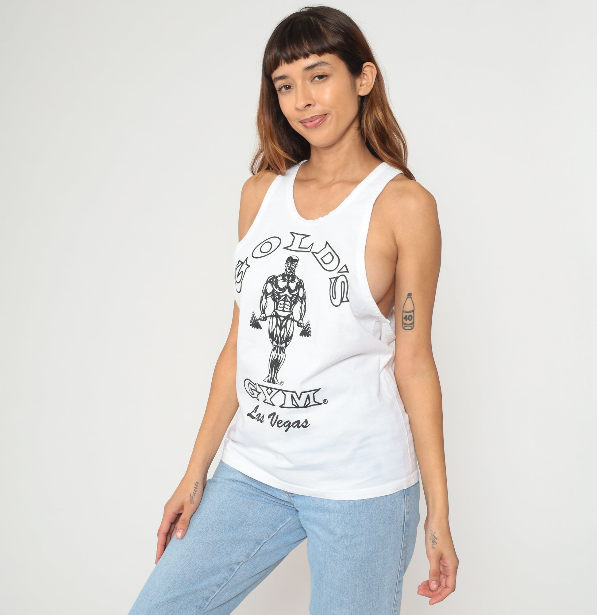 Golds Gym Tank Top 90s White Racerback Las Vegas Cotton Athletic Vintage Workout Muscle Shirt Fitness Training Gym Wear Bodybuilding Medium