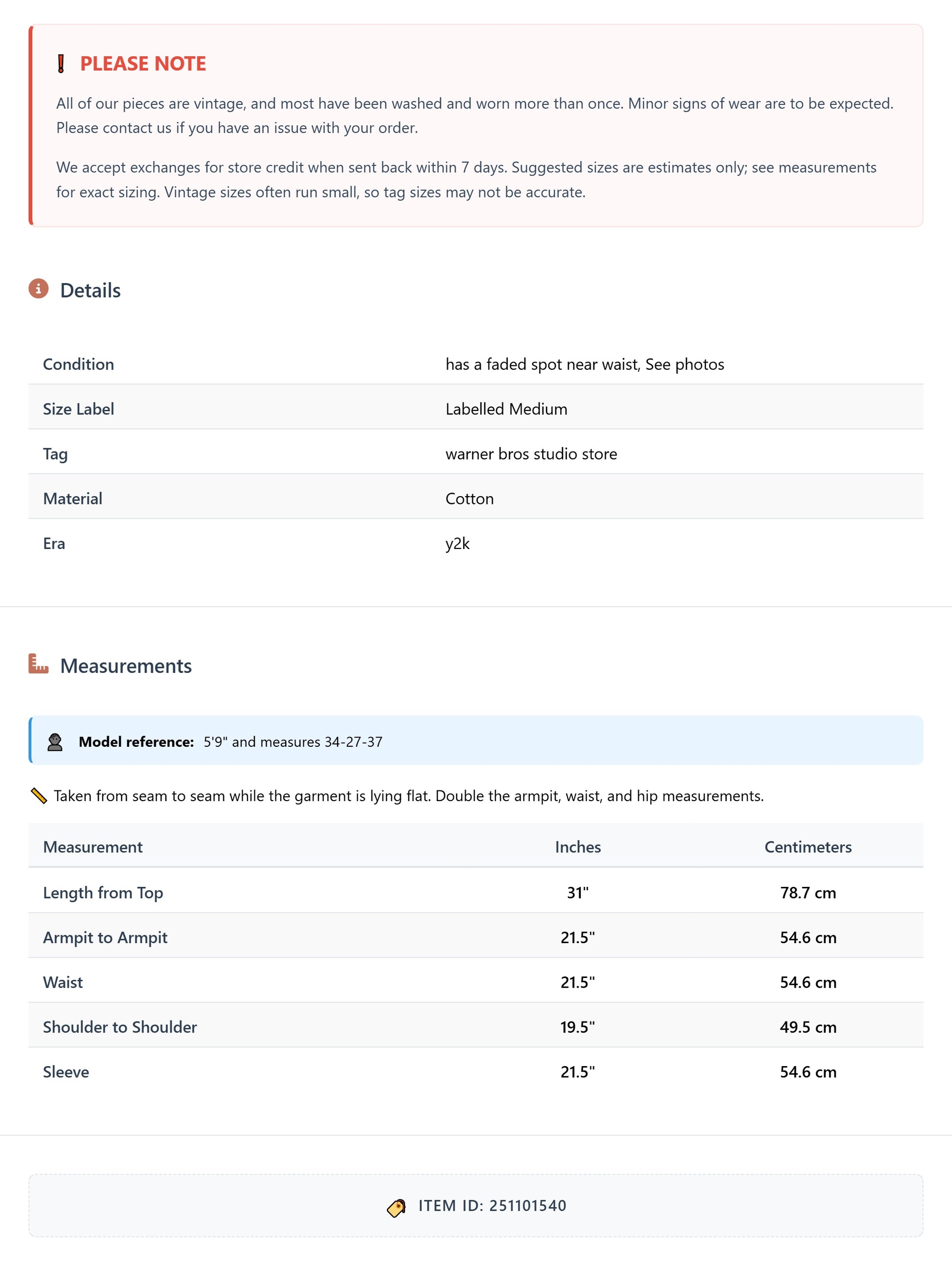 Suggested sizes are estimates only; see measurements for exact sizing. Vintage sizes often run small, so tag sizes may not be accurate.
