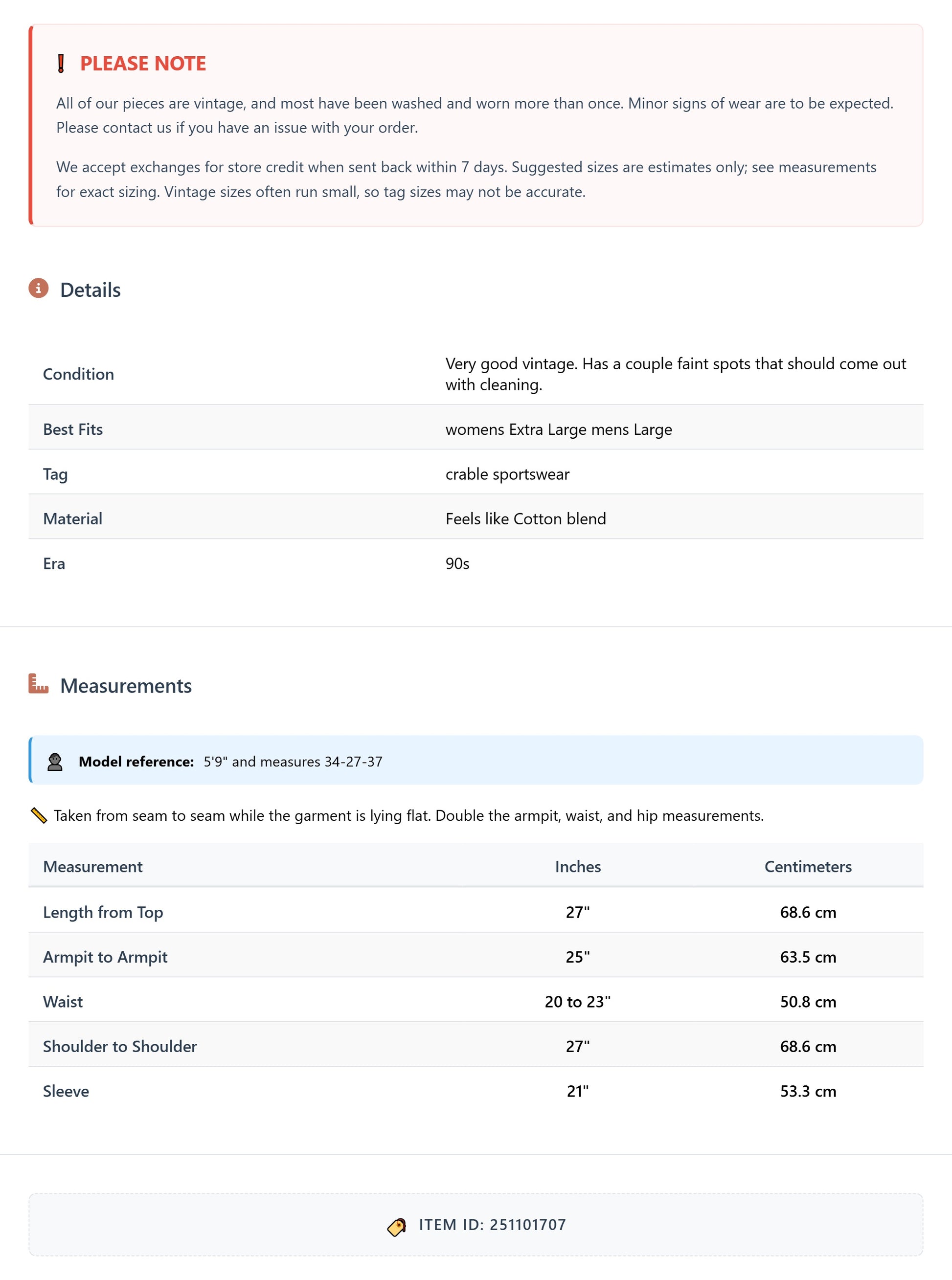 Suggested sizes are estimates only; see measurements for exact sizing. Vintage sizes often run small, so tag sizes may not be accurate.