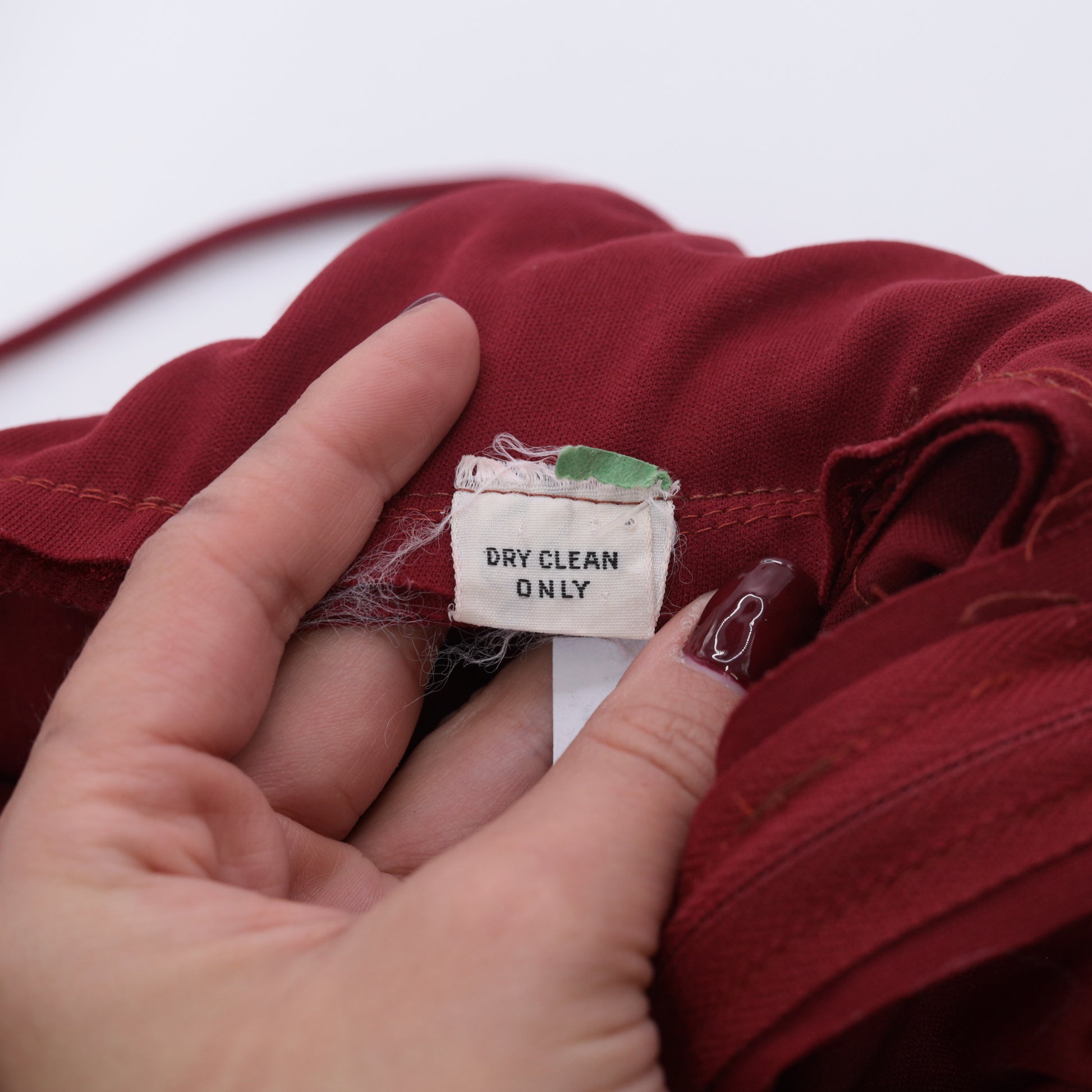 Vintage 70s Wine Red Maxi Party Dress Crochet Trim XS