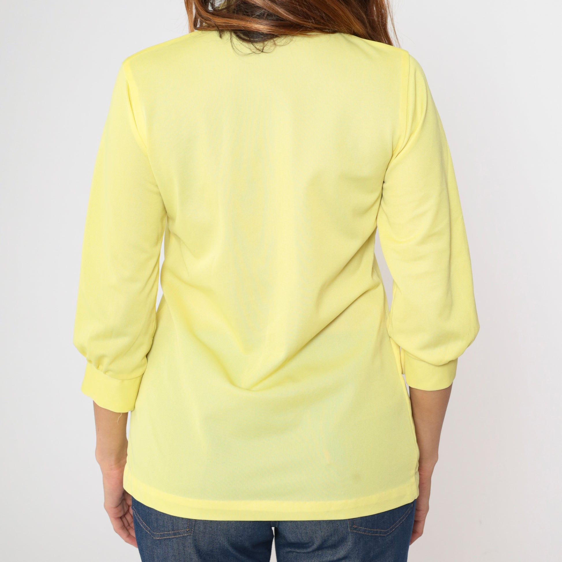 Vintage 70s Yellow Button Up Blouse XS